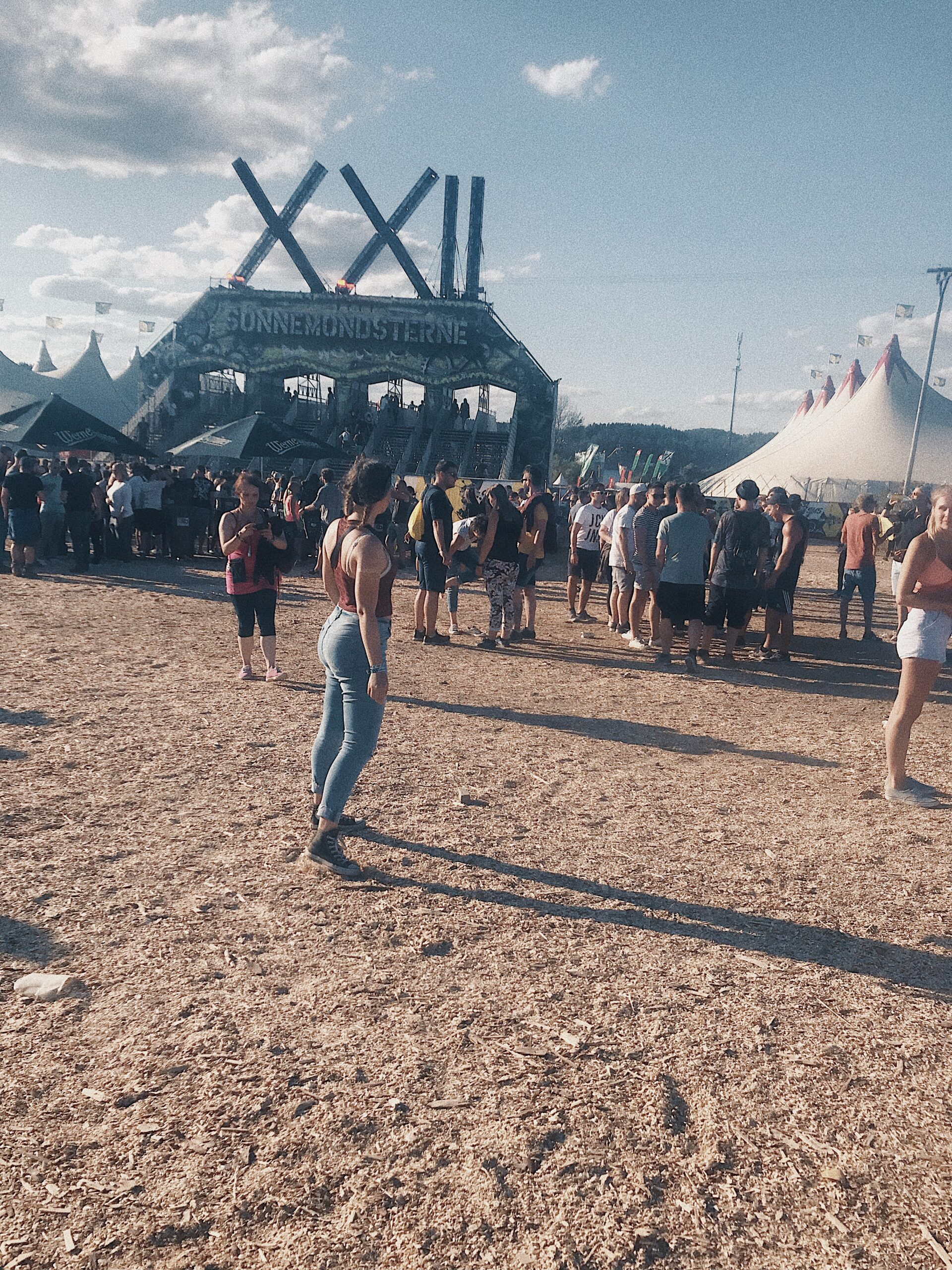 Da wir aber nun schon so früh wach waren, konnten wir ganz entspannt in den Tag starten und uns in Ruhe fertig machen. Gegen 15 Uhr haben wir uns zum ersten Mal auf den Weg zum Gelände gemacht, um uns alles vorher in Ruhe anzugucken. Außerdem mussten wir uns noch unsere Eintrittsbänder holen. Leute, ich sag’s euch – so eine lange Schlange habe ich schon lange nicht mehr gesehen. Doch erstaunlicherweise ging es trotzdem super schnell, so dass wir nach nicht mal 45 Minuten schon aus der Schlange raus waren.