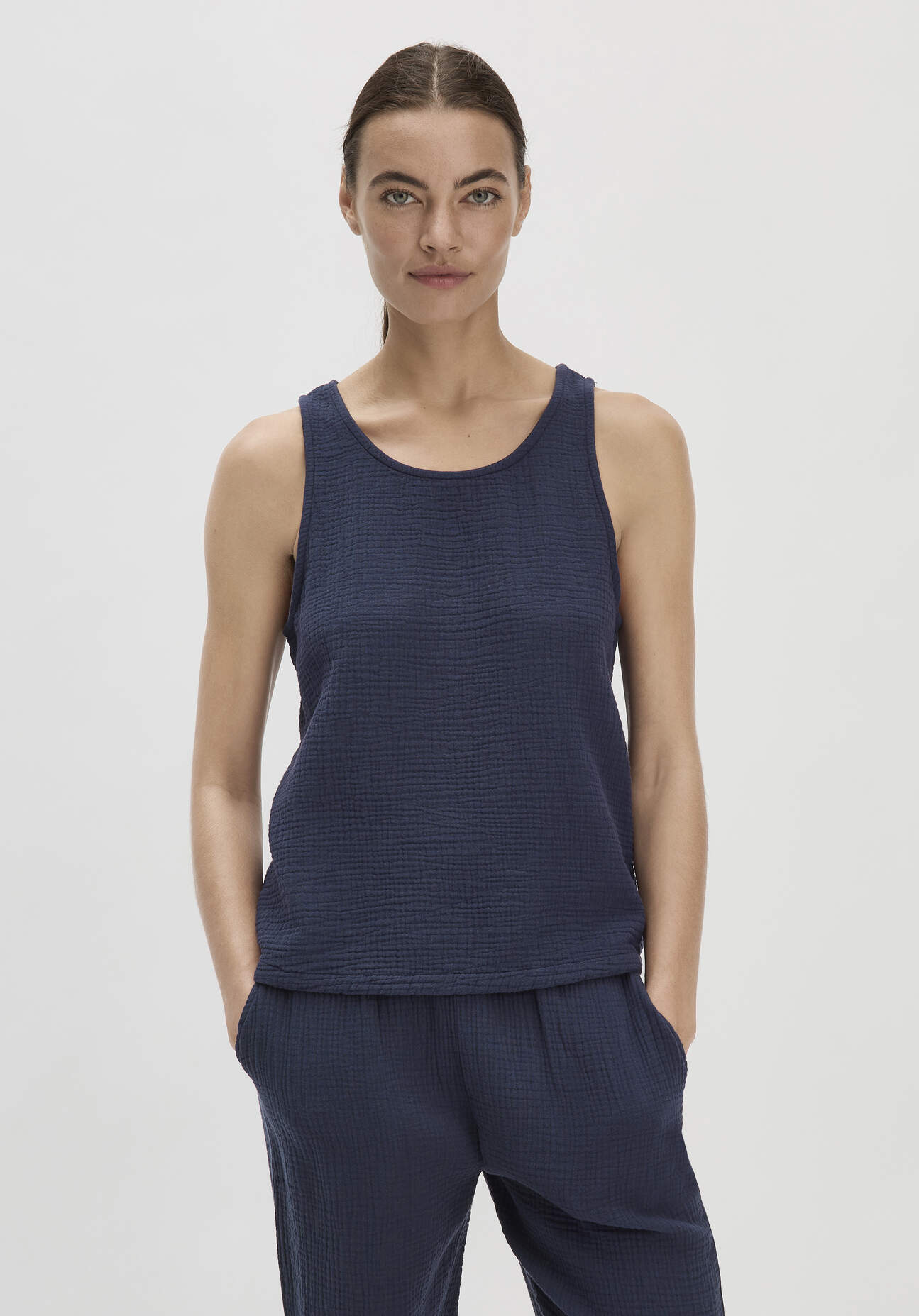 Wohlfühlen & Nachhaltigkeit? Sind wunderbar vereint. Ein luftig-leichtes Top zum Hineinschlüpfen für Tag und Nacht aus feinem Musselin-Gewebe. Weil bio auf der Haut einfach glücklich macht: Mensch und Natur.