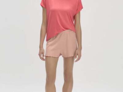 hessnatur Damen Pointelle Schlafshorts Relaxed PURE COTTON aus Bio-Baumwolle – rosa – Größe 48