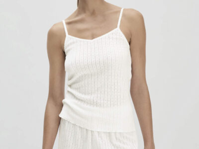 hessnatur Damen Pointelle Spaghetti Top PURE COTTON aus Bio-Baumwolle – weiß – Größe 36