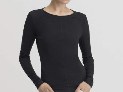 hessnatur Damen Rib Shirt Slim aus Bio-Merinowolle und TENCEL™ Lyocell – schwarz – Größe 36
