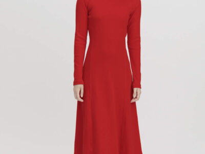 hessnatur Damen Rib Jersey Kleid Midi Slim aus Bio-Baumwolle – rot – Größe 36