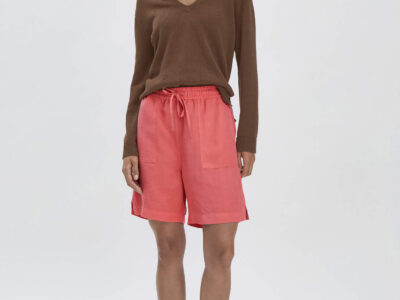 hessnatur Damen Shorts Relaxed aus weichem TENCEL Lyocell mit Leinen – rot – Größe 34