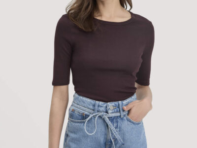 hessnatur Damen Softrib T-Shirt Fitted aus Bio-Baumwolle und TENCEL™ Modal – braun – Größe 36