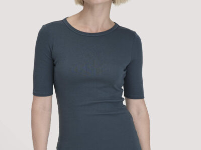 hessnatur Damen Softrib T-Shirt Fitted aus Bio-Baumwolle und TENCEL™ Modal – blau – Größe 46