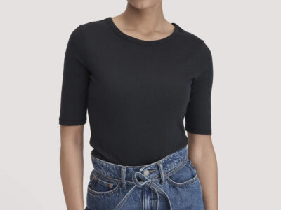 hessnatur Damen Softrib T-Shirt Fitted aus Bio-Baumwolle und TENCEL™ Modal – schwarz – Größe 36