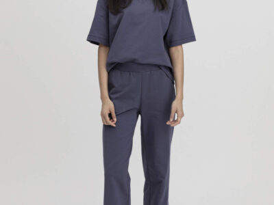 hessnatur Damen Loungehose Relaxed aus Bio-Baumwolle mit Kapok – blau – Größe 42