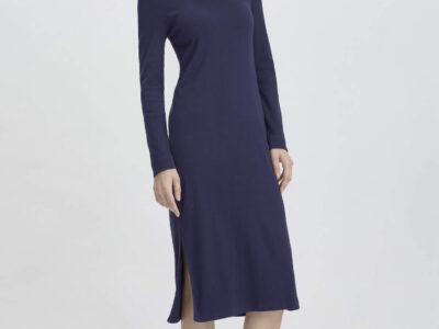hessnatur Damen Nachthemd SOFT RIB aus Bio-Baumwolle – blau – Größe 36